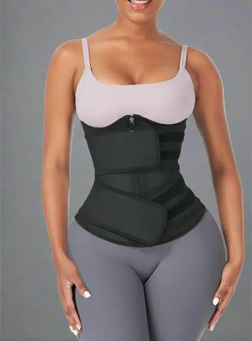 Black Zipper & Double Straps Waist Trainer for Weight Loss